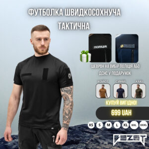 Футболка швидкосохнуча тактична - Отримуй ТАКТИЧНУ БЕЙСБОЛКУ BEZET MILITARY в подарунок на ваш вибір!