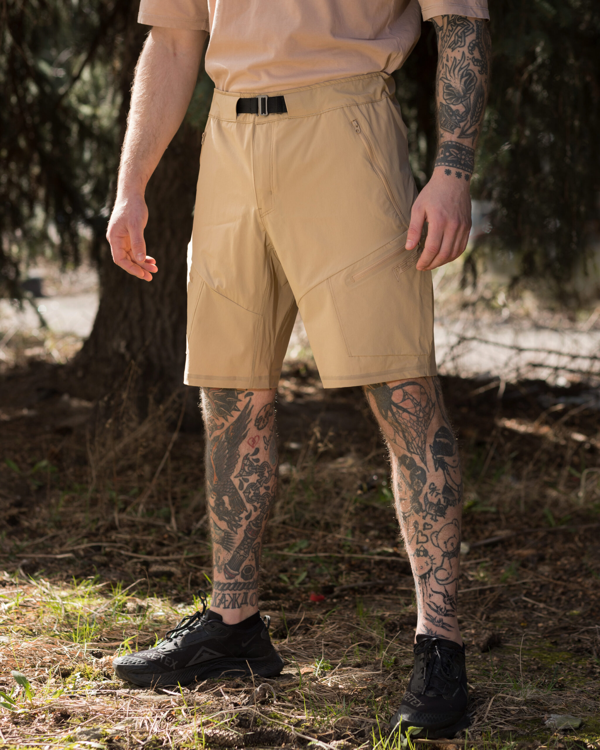 Наші шорти мають вільний прямий крій і пояс, який застібається на міцний металевий гудзик. Додатковий потаємний ремінь дозволяє регулювати об’єм пояса зручним для вас способом. З шортами BEZET ви отримуєте дві кишені для рук, дві бокові кишені та одну кишеню ззаду – всі обладнані блискавками від всесвітньо відомого бренду YKK. Кожна деталь шортів проклеєна водовідштовхуючим клеєм для кращої фіксації, а місця підвищеного навантаження прошиті подвійними швами, забезпечуючи максимальну міцність і довговічність. На лівій нозі розташований фірмовий логотип BEZET, який свідчить про високу якість і надійність продукту.