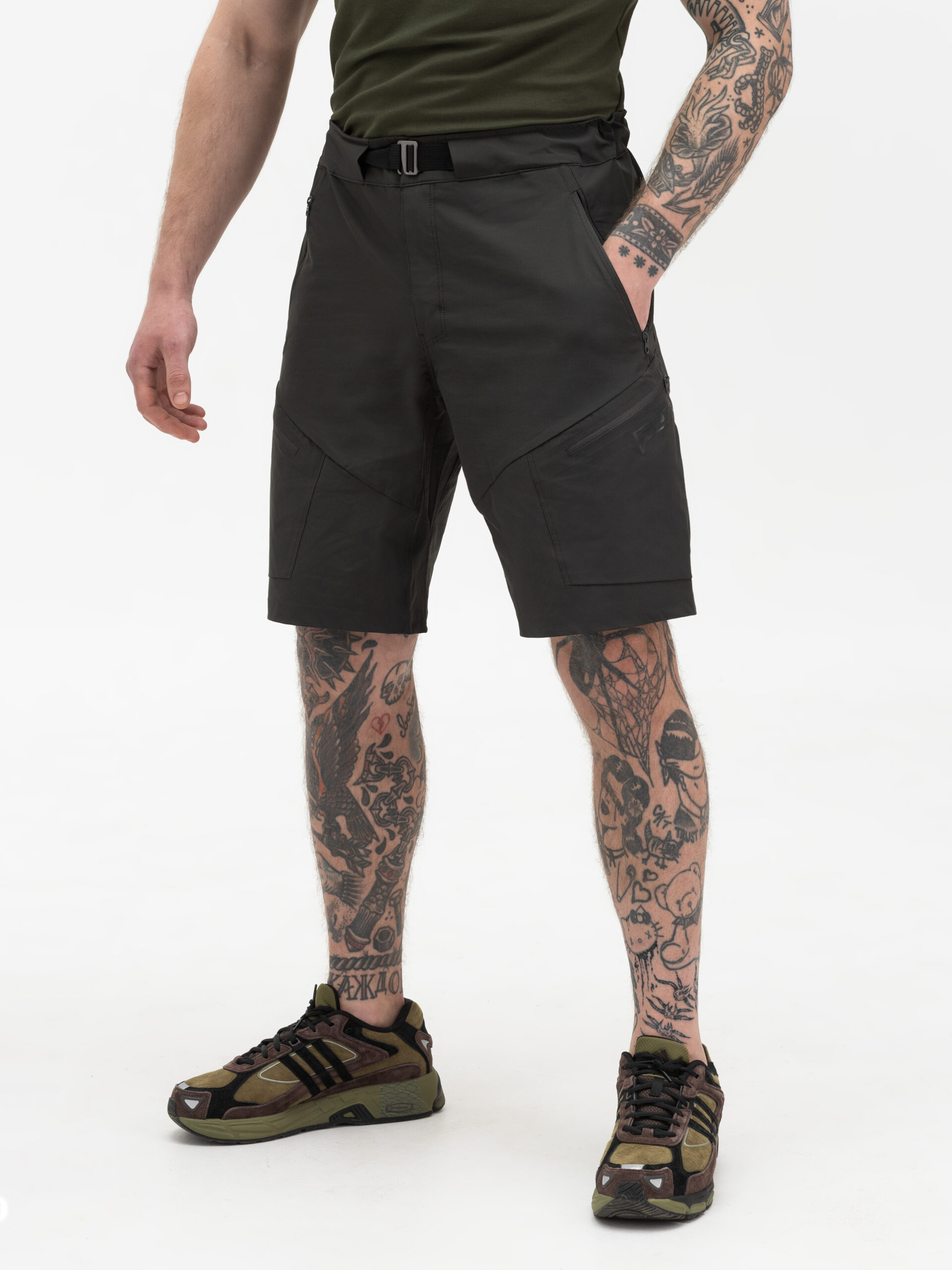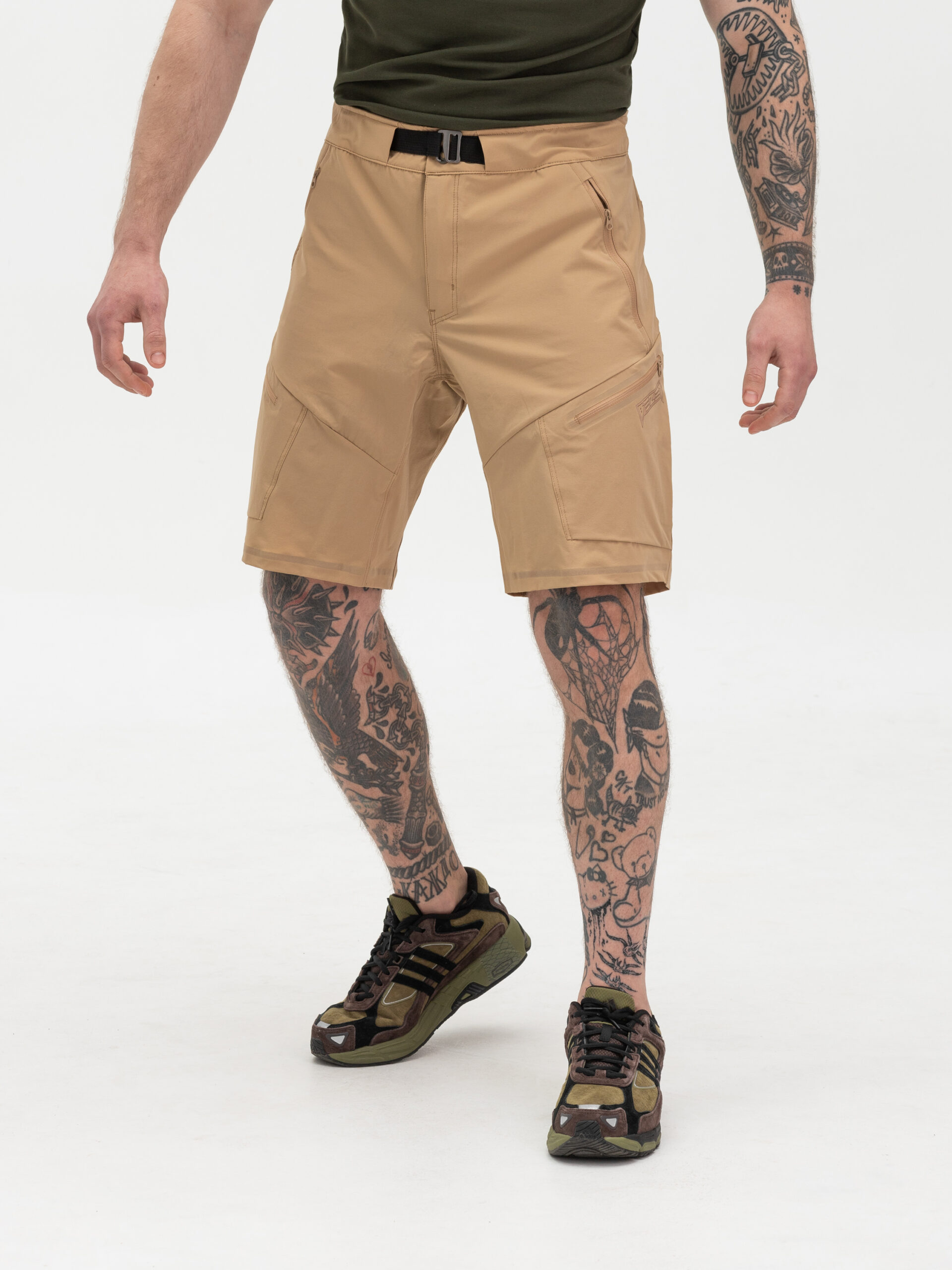 Наші шорти мають вільний прямий крій і пояс, який застібається на міцний металевий гудзик. Додатковий потаємний ремінь дозволяє регулювати об’єм пояса зручним для вас способом. З шортами BEZET ви отримуєте дві кишені для рук, дві бокові кишені та одну кишеню ззаду – всі обладнані блискавками від всесвітньо відомого бренду YKK. Кожна деталь шортів проклеєна водовідштовхуючим клеєм для кращої фіксації, а місця підвищеного навантаження прошиті подвійними швами, забезпечуючи максимальну міцність і довговічність. На лівій нозі розташований фірмовий логотип BEZET, який свідчить про високу якість і надійність продукту.