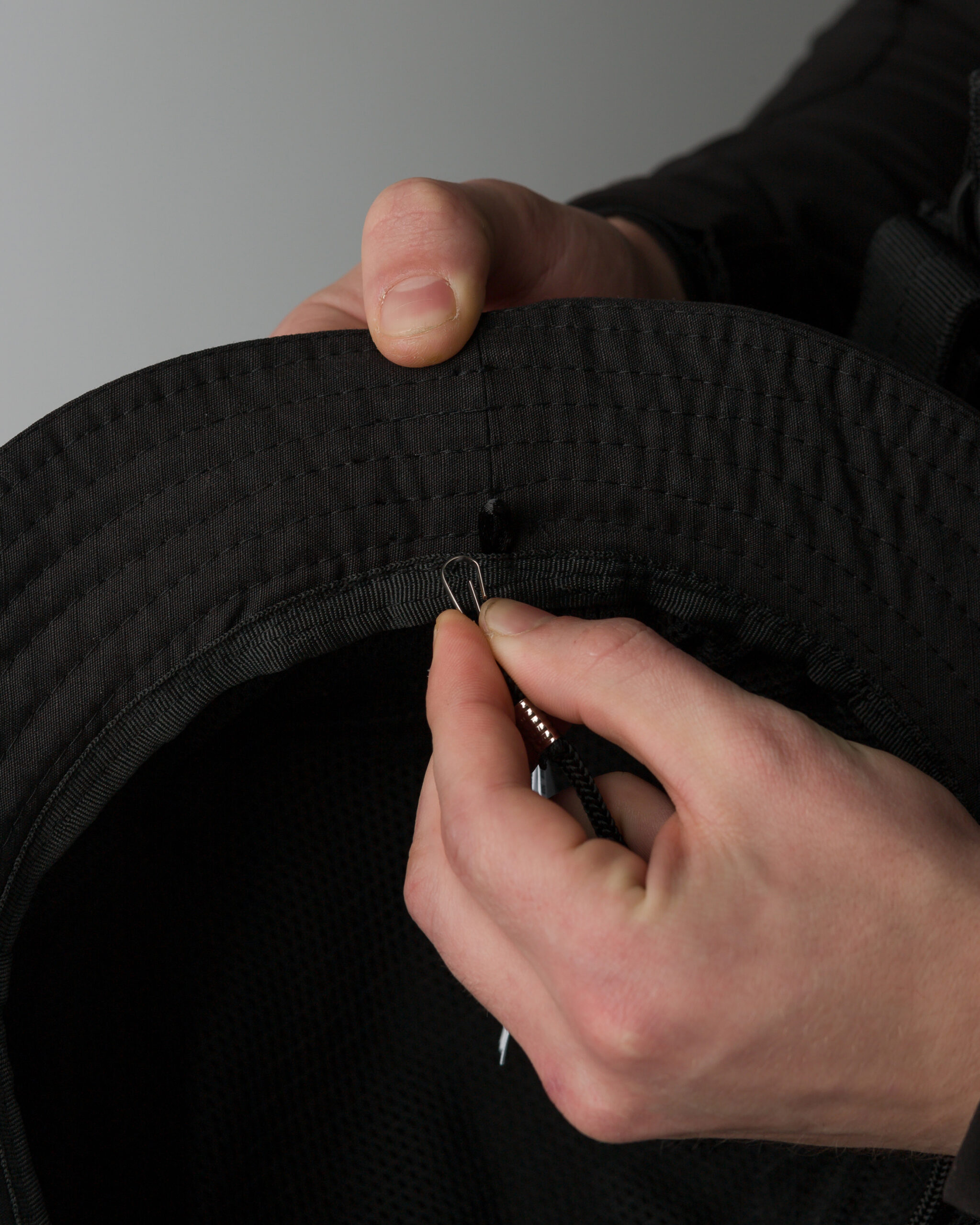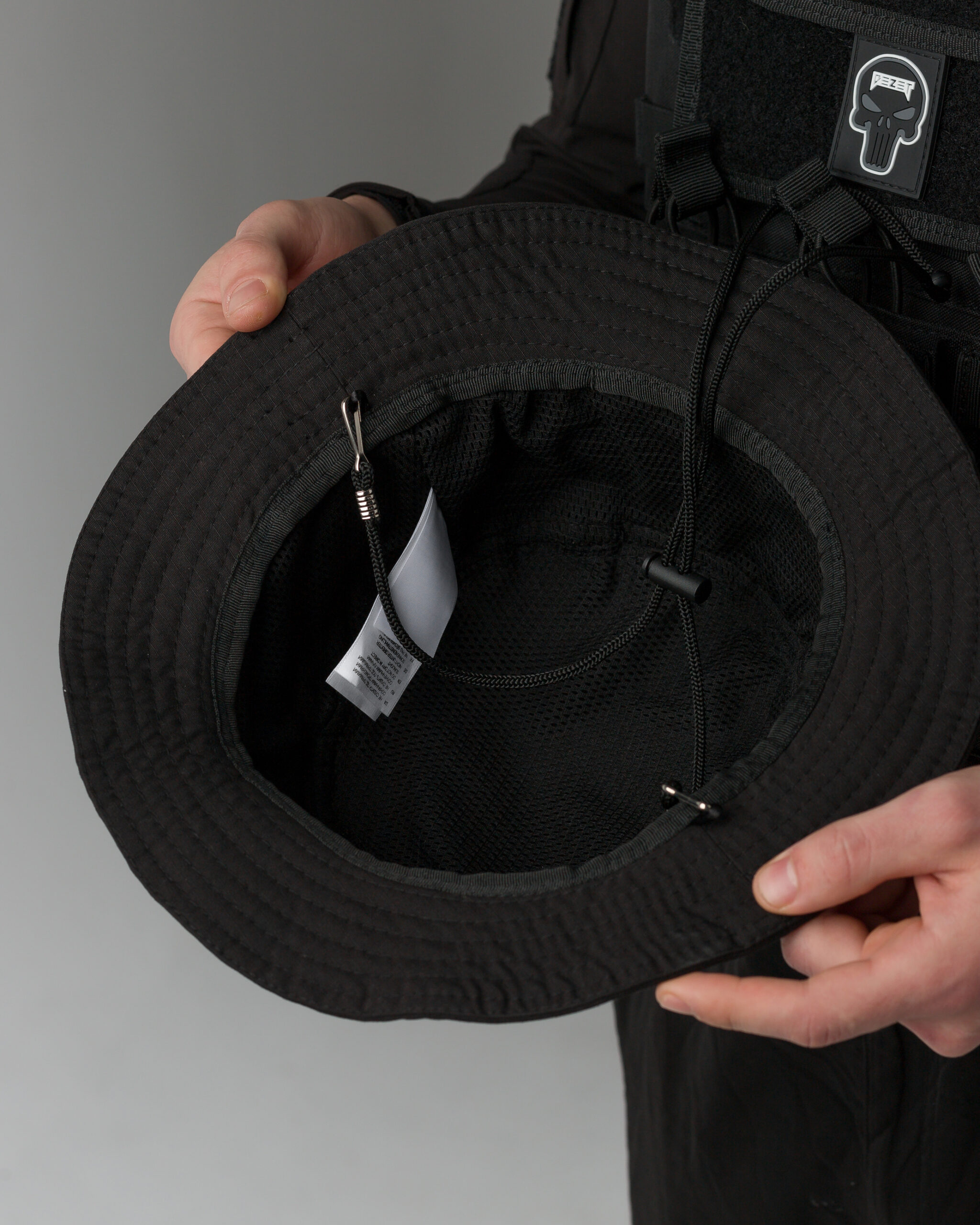 Внутренняя подкладка выполнена из легкой трикотажной сетки, что добавляет дополнительный комфорт и воздухопроницаемость. Шнур с пластиковой стяжкой внутри панамы гарантирует надежную фиксацию на голове, обеспечивая идеальную посадку независимо от активности.