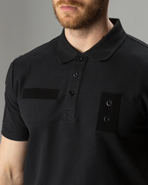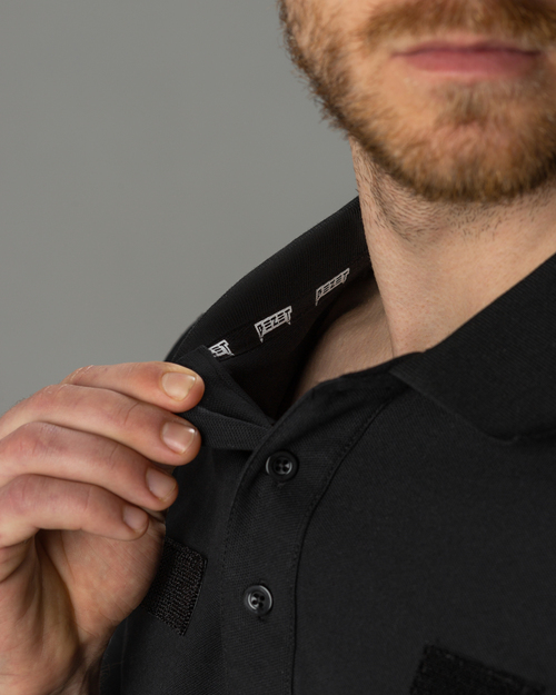 Покращену версію футболки поло BEZET 2.0 у чорному кольорі, спеціально розроблену для поліцейських сил. Ця модель відрізняється від попередньої наявністю вбудованих отворів під житон на грудях, що робить її ще більш функціональною для поліцейських, які використовують бронежилети. Виготовлена з високоякісних матеріалів, ця футболка забезпечує комфорт та довговічність в умовах повсякденного використання на службі. Чорний колір і стриманий дизайн підкреслюють професіоналізм і авторитет поліцейських, а тактичні елементи роблять її ідеальним вибором для службового використання у будь-яких ситуаціях.